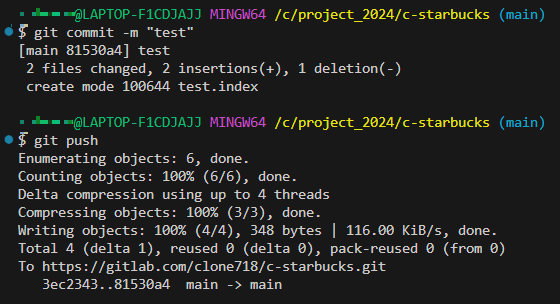- 해당 과정을 거치면 깃랩에 커밋과 푸시 완료