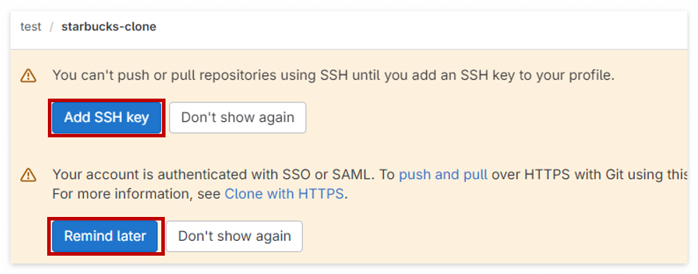 - SSH Key를 설정하지 않으면 clone, pull 또는 ci/cd를 실행할 때, 계속 비밀번호를 치고 실행해야한다고 함.