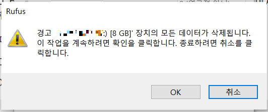 USB의 모든 데이터가 삭제된다는 경고가 나오면 ok 눌러주기